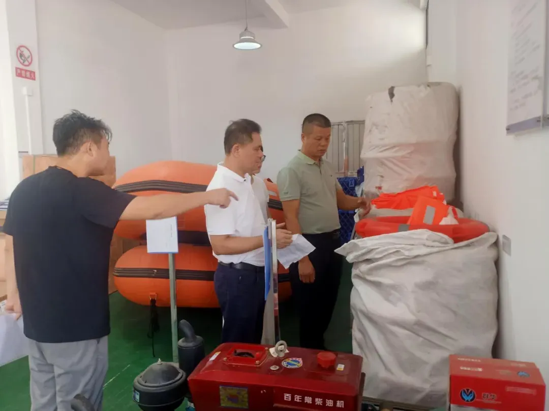 全体党员干部严阵以待,全面进入“应急状态”,强化防台防汛物资储备。 系统梳理应急救援装备清单,逐项核查救生艇、排水泵、发电机等关键设备运行状态;全面清点救灾物资数量,及时增补消耗性物资储备;重点测试卫星电话、对讲机等通讯设备性能,确保关键时刻调得出、用得上。建强应急处置队伍。明确应急分队人员组成与职责分工,细化“管理研判、信息收集、抢险救援、后勤保障”等岗位任务,提升队伍协同作战能力。